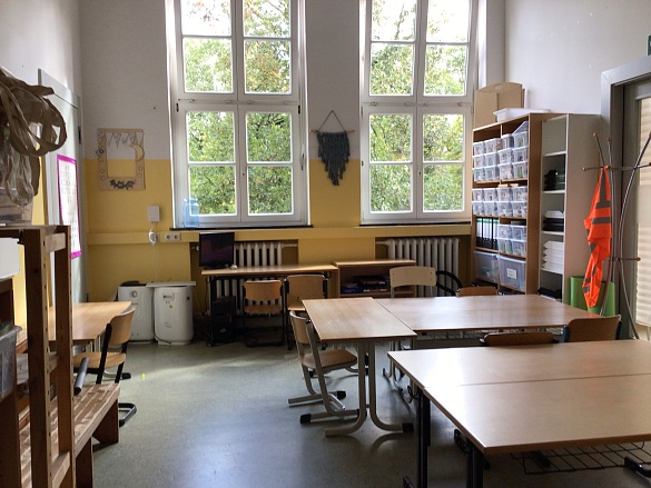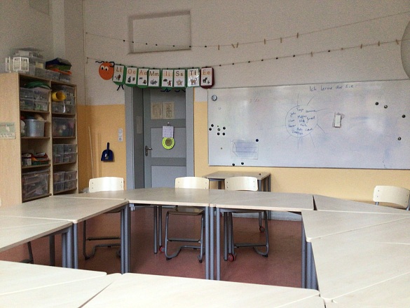 Jede Klasse hat einen Klassenraum.