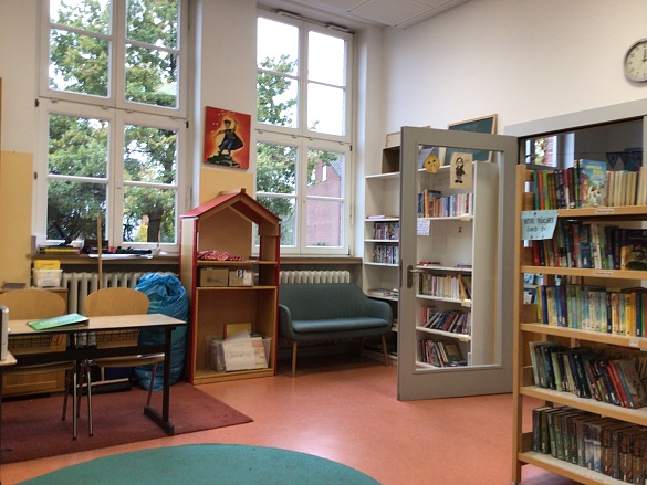 Man kann die Bücher für zwei Wochen ausleihen. Es gibt Comics, Rekorde und kurze Bücher und lange Bücher. In der Bücherei gibt’s auch den Leseclub.