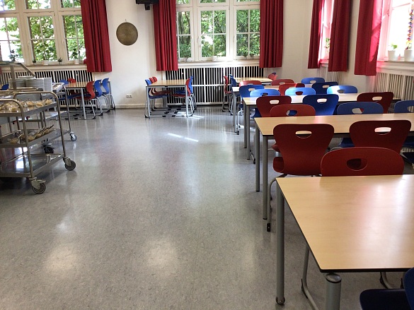 In der Mensa gibt es einen Gong, wenn die Lehrkräfte es zu laut finden.